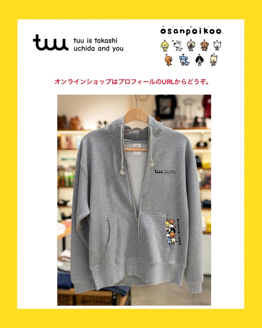 おさんぽいこうのフード付きパーカーです。